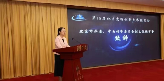 北京市科學(xué)技術(shù)研究院副院長(zhǎng)、北京發(fā)明協(xié)會(huì)理事長(zhǎng)劉清珺主持會(huì)議,中國(guó)發(fā)明協(xié)會(huì)黨委書(shū)記余華榮,北京市科學(xué)技術(shù)研究院院長(zhǎng)伍建民,北京市科委、中關(guān)村管委會(huì)副主任張宇蕾,北京市女科協(xié)常務(wù)副理事長(zhǎng)李靜等領(lǐng)導(dǎo)出席。張宇蕾發(fā)表了充滿激情的致辭,她說(shuō),北京發(fā)明創(chuàng)新大賽歷經(jīng)18年的發(fā)展,用獨(dú)特的視角發(fā)現(xiàn)社會(huì)創(chuàng)新的火花,用科學(xué)的態(tài)度容納發(fā)明創(chuàng)意的多姿多彩,面向全社會(huì)搭建起了一個(gè)釋放各類(lèi)主體創(chuàng)新潛能、發(fā)掘優(yōu)質(zhì)創(chuàng)新資源的平臺(tái)。北京發(fā)明創(chuàng)新大賽就是萬(wàn)眾創(chuàng)新的大平臺(tái),是為社會(huì)各界參與發(fā)明創(chuàng)新而建,已成為政府引導(dǎo)大眾創(chuàng)新的有力抓手。