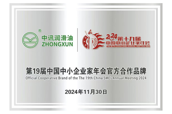 會議向中訊潤滑油頒發(fā)“第19屆中國中小企業(yè)家年會官方合作品牌”。